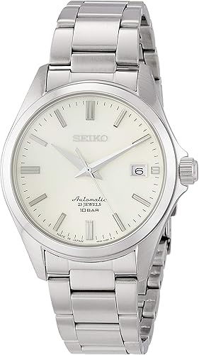 Seiko 精工手表机械表自动上弦 带手动上弦 背面透明后盖日期显示功能日常生活用强化防水 10个大气压 Sarv001 男士银色 钟表 亚马逊中国